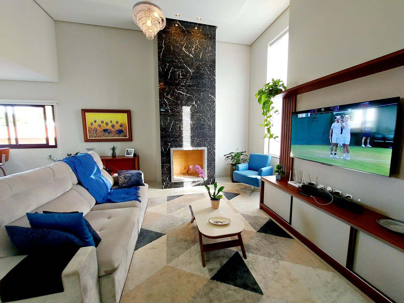 🔥 Sala com Lareira e Pé Direito Duplo